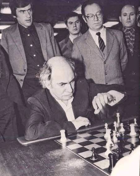 1.d4 Nf6 2.c4 g6 3.Nf3 Bg7 4.e3 0–0 5.Be2 d6 6.Nc3 Nc6 7.0–0 Re8 8.Ne1 a5 9.a3 e6 10.b3 b6 11.Bb2 Bb7 12.Rc1 Ne7 13.Bf3 d5 14.Qc2 Nf5 15.g3 h5 16.h4 Rc8 17.Ng2 Nd6 18.cxd5 exd5 19.Rfd1 Nde4 20.b4 axb4 21.axb4 Ba6 22.Be2 Bxe2 23.Qxe2 Qd7 24.Ra1 Nxc3 25.Bxc3 Ne4 26.Be1 c5 27.bxc5 bxc5 28.Qd3 cxd4 29.exd4 Rc4 30.Nf4 Rxd4 31.Qb3 Rxd1 32.Rxd1 d4 33.f3 Nc5 34.Qc4 Qc6 35.Rc1 Bf8 36.Bf2 Qxf3 37.Qd5 Ne4 38.Rf1 Qg4 39.Re1 Qf3 40.Rf1 Bd6 41.Ng2 Re5 42.Qa8+ Kg7 43.Bxd4 Qd3 44.Qa7 Nf6 45.Qb6 Nd7 46.Qxd6